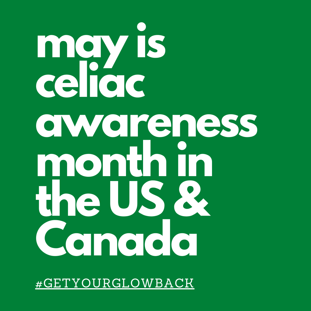 May is Celiac/Coeliac Awareness Month in Canada, Europe and the United States, and May 16 is internationally recognized as Celiac Awareness Day. Building off of the Canadian Celiac Association’s Celiac Awareness Month activities of 2019—where buildings in five major cities across Canada “glowed” with green lights for awareness—celiac-related organizations across the globe have come together to support the 2020 Get Your Glow Back combined campaign.